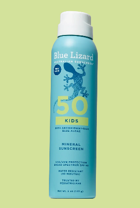 Play sun safe with Blue Lizard Kids Mineral SPF 50 Sunscreen Spray. Formulated with Zinc Oxide, this easy-to-apply mineral sunscreen spray provides broad-spectrum, head-to-toe sun protection from harmful UV rays, including 98% of UVB rays. With up to 80 minutes of water resistance, this is the ultimate choice for more fun under the sun. This mineral-only SPF includes antioxidant-rich Blue Algae. Free from fragrances, parabens, and chemical active ingredients, making it ideal for sensitive skin.